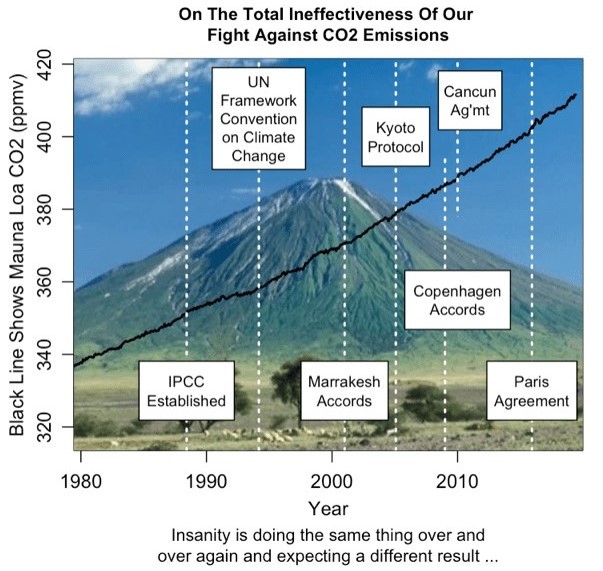 Without CO2 there is no life on Earth – Plants like three times what is in the Atmosphere. CO2 is greening the planet 17% the past 30 years; Reduced Sahara Desert by 7%. CO2 fell within 30 PPM of plant Extinction levels 20,000 years ago. CO2 is the most essential Trace Gas of Life. CO2 at 200 ppm is 95% fully saturated in its IR Band 2x or 4x more adds insignificant warming. Water Vapor is 95% of all Green House Gases. Man-made CO2 is a good thing, it makes up for the Earth’s conversion of CO2 into Limestone and Marble. NetZero is Based on Fighting the Trace Gas of Life. $150 Trillion will be required to build “renewable” that will industrialize Nature. Meanwhile China is building 1,500 coal plants and completed a $30 Billion 2-Million Ton-a-year railroad. Stop the Greens from Industrializing Nature with low-density intermittent energy that requires fossil fuel backup A Dearth of Co2
